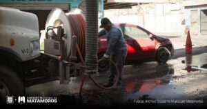 En cumplimiento a la instrucción del Presidente Municipal de Matamoros, Beto Granados, personal de las cuadrillas de la Junta de Aguas y Drenaje de la ciudad de Matamoros trabaja de