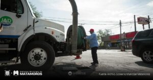 Gobierno de Matamoros refuerza trabajos de limpieza y desazolve con camión vactor en el Fraccionamiento Victoria
