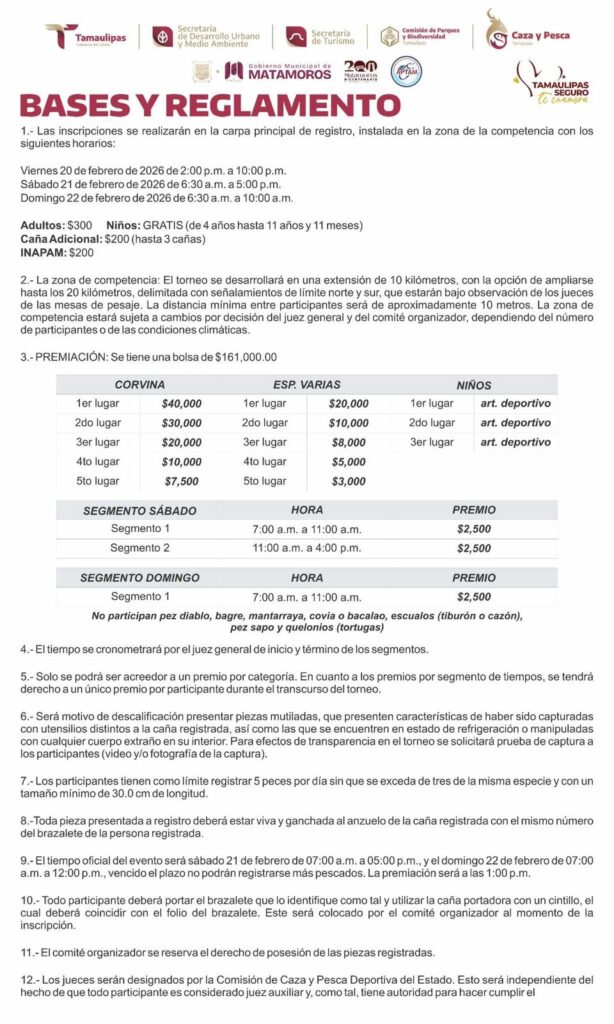 - Si un acompañante pesca a lado tuyo y no está inscrito afectará al grupo porque se descalificaría a dichos participantes.