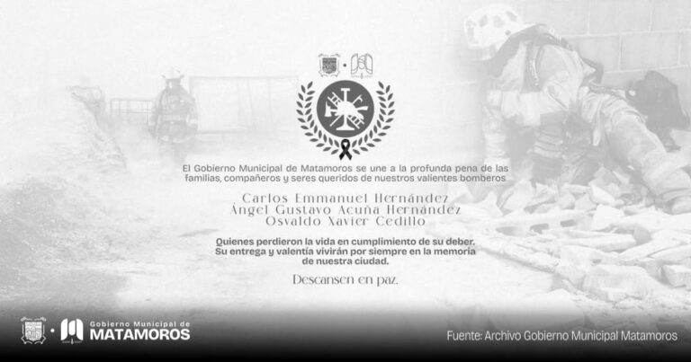 El Gobierno de Matamoros que encabeza el Presidente Municipal Beto Granados lamentó el fallecimiento de tres elementos del Heroico Cuerpo de Bomberos de Matamoros, en cumplimiento de su deber. En las primeras horas de este viernes se registró un incendio…