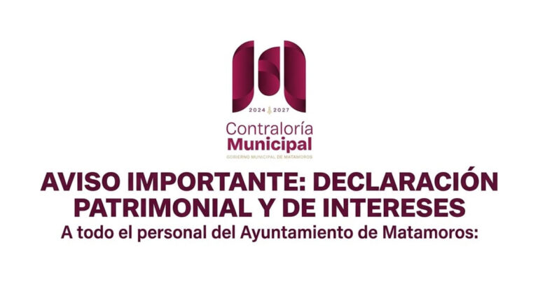 Realiza tu trámite de manera digital ingresando al portal oficial: A todo el personal del Ayuntamiento de Matamoros: La Contraloría Municipal de Matamoros le invita a dar cumplimiento a sus obligaciones de transparencia. Es fundamental presentar su declaración en tiempo…