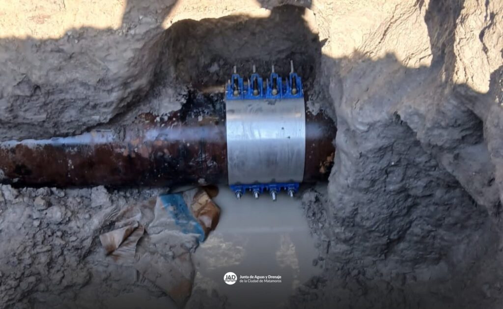 Durante las labores, el personal especializado colocó una abrazadera en un tubo de 16 pulgadas, lo que permitió resolver completamente la fuga detectada en el sector. Con acciones como esta, se refuerza el compromiso del Gobierno de Matamoros con la eficiencia en los servicios públicos y el bienestar de las familias matamorenses.