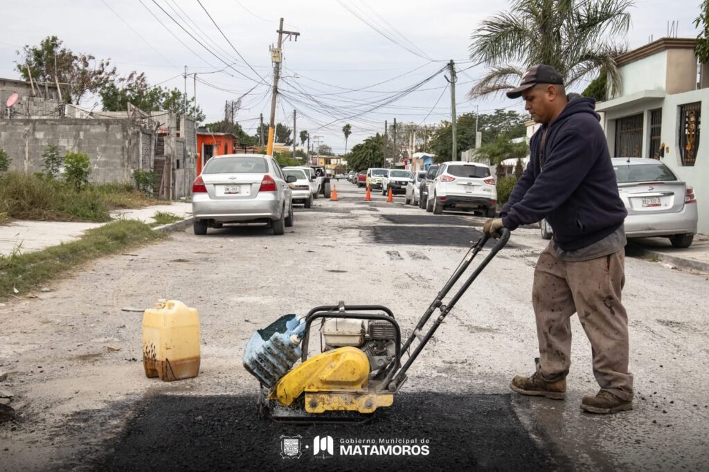 El Gobierno de Matamoros continúa con los trabajos de mejoramiento vial en distintos puntos de la ciudad, como parte de las acciones permanentes que fortalecen la infraestructura urbana y dan paso al renacimiento de Matamoros. En esta jornada se realizaron labores de mantenimiento en las colonias Palo Verde, Vista Hermosa, Hacienda Los Encinos, Emilio Portes Gil, Valle Real, Lauro Villar y Los Sauces, atendiendo vialidades que requerían intervención.