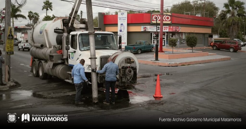 El Presidente Municipal Beto Granados, a través de la Junta de Aguas y Drenaje de Matamoros, continúa impulsando acciones para mejorar el funcionamiento del sistema de drenaje en diversos sectores de la ciudad. Como parte de estos trabajos permanentes, cuadrillas del área de Vactor acudieron a la calle 14 y Calixto Ayala, en la colonia Buenavista, donde se detectaron taponamientos ocasionados por la acumulación de desechos.