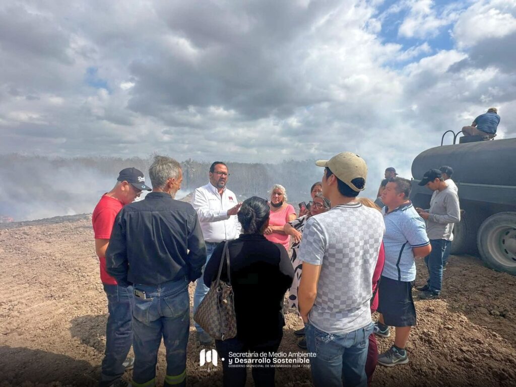 Gobierno de Matamoros sofoca incendio en basurero clandestino en colonia Control Norte 3