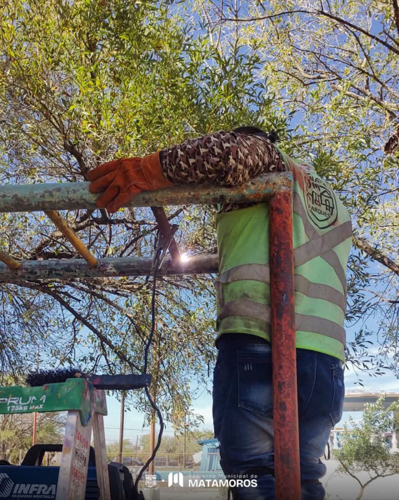Estas labores tienen como objetivo devolverle funcionalidad y vida a este espacio público, para que pronto vuelva a ser un lugar seguro, digno y cómodo, donde niñas, niños y familias puedan convivir y disfrutar al aire libre, fortaleciendo el tejido social y haciendo que brille Matamoros.