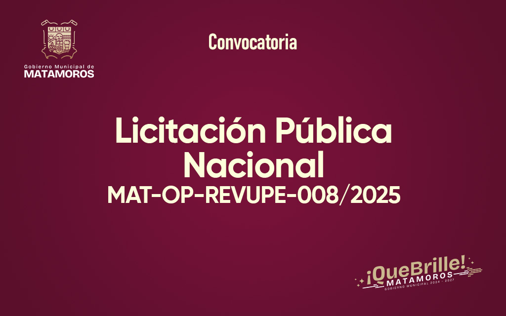 Licitación Pública Nacional. Pavimentación Asfáltica. MAT-OP-REVUPE-008/2025