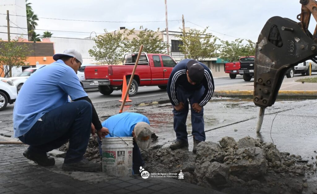 En cumplimiento a la instrucción del Presidente Municipal de Matamoros, Beto Granados, personal de las cuadrillas de la Junta de Aguas y Drenaje de la ciudad de Matamoros trabaja de manera permanente en la detección y reparación de fugas de agua potable, con el objetivo de mejorar el servicio y cuidar el recurso hídrico en los distintos sectores del municipio.