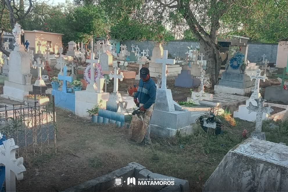 El Gobierno de Matamoros realiza labores de limpieza, mantenimiento y seguridad en los panteones municipales.