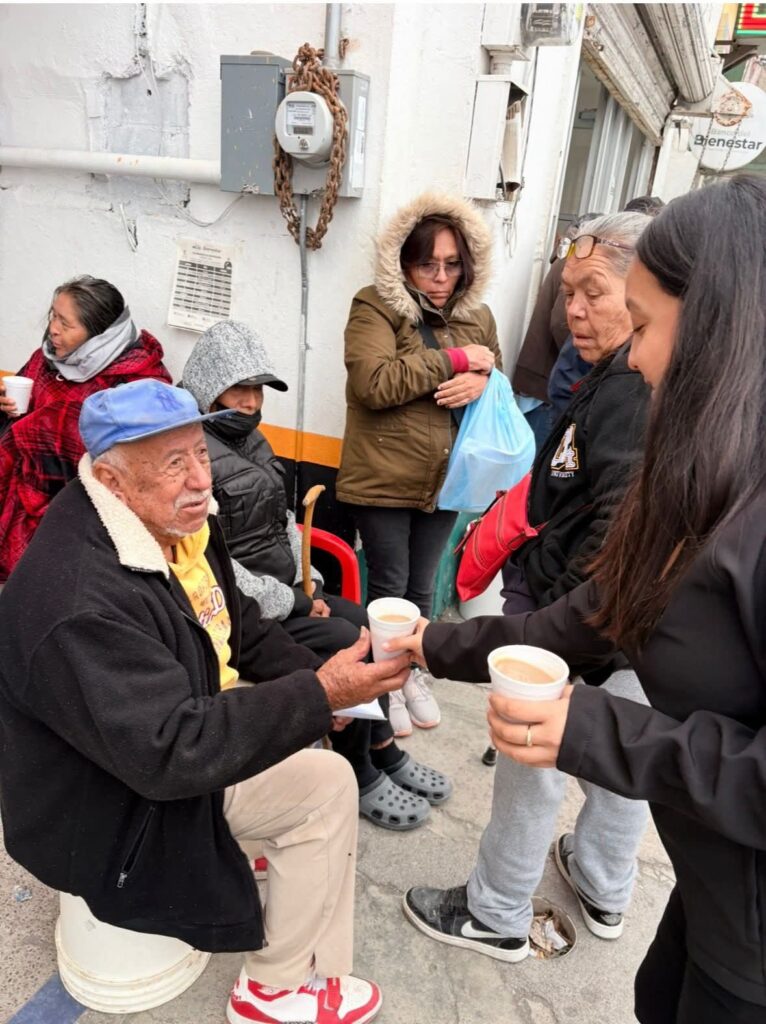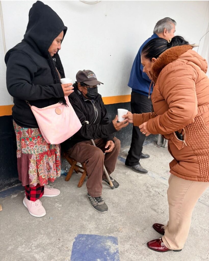 Ante el descenso de las temperatura que se registró durante esta semana, la Secretaría de Bienestar Social implementó una acción de apoyo para las y los adultos mayores que acuden a los Bancos del Bienestar, brindándoles café caliente durante estos días de frío.
