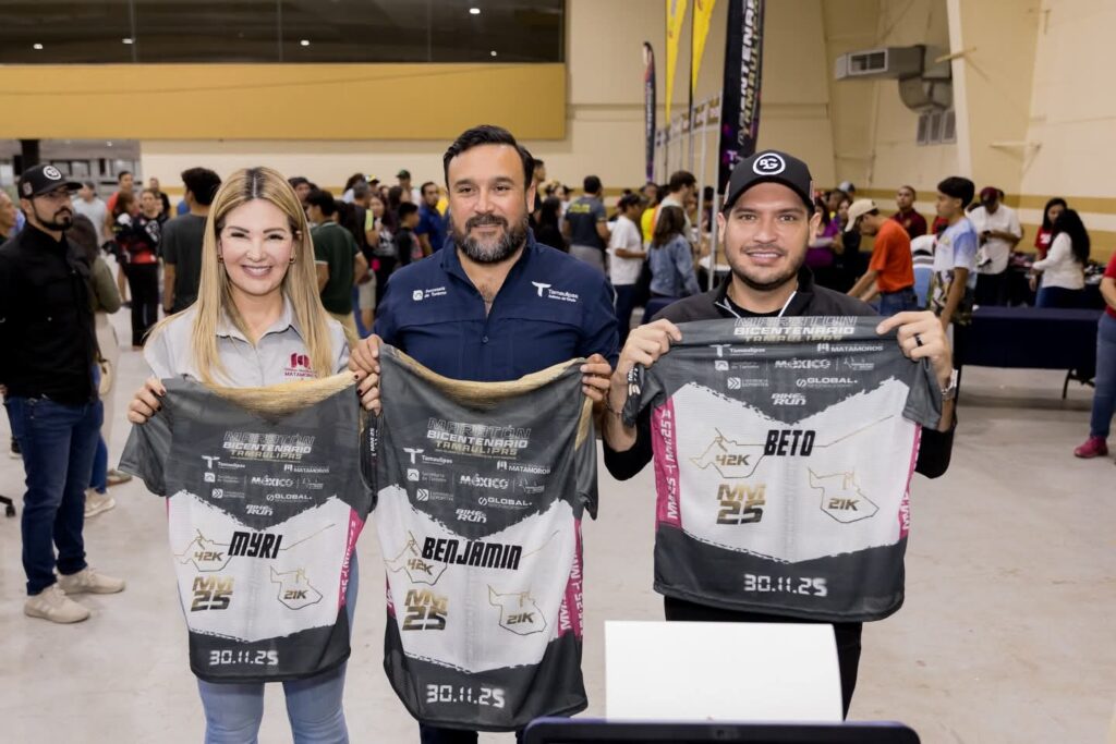 El Presidente Municipal Beto Granados participó este día en la entrega de folios para el Maratón Bicentenario, evento realizado en el Centro de Convenciones Mundo Nuevo. Acompañado por el secretario de Turismo de Tamaulipas, Benjamín Hernández Rodríguez, el presidente municipal presenció la entrega oficial y aprovechó la ocasión para recibir su propio folio. Asimismo, se informó que el maratón iniciará mañana a las 5:30 de la mañana.