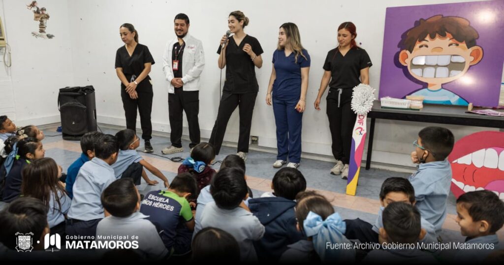 Trabajando en acciones que fomenten el bienestar de la niñez, el departamento de Dental del Sistema DIF Matamoros visitó este miércoles la Escuela Primaria “Niños Héroes”, donde alumnas y alumnos recibieron orientación sobre la importancia de la higiene bucal.