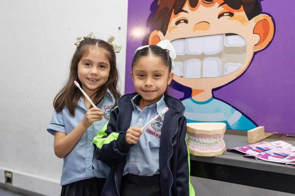 A través del programa “Iluminando Sonrisas”, se brindan pláticas dirigidas a niñas y niños con el objetivo de promover hábitos adecuados para el cuidado diario de los dientes, enseñándoles técnicas correctas de cepillado y la importancia de una alimentación que contribuya a fortalecer su salud bucal.