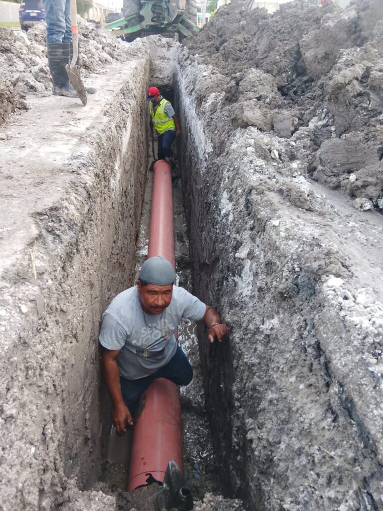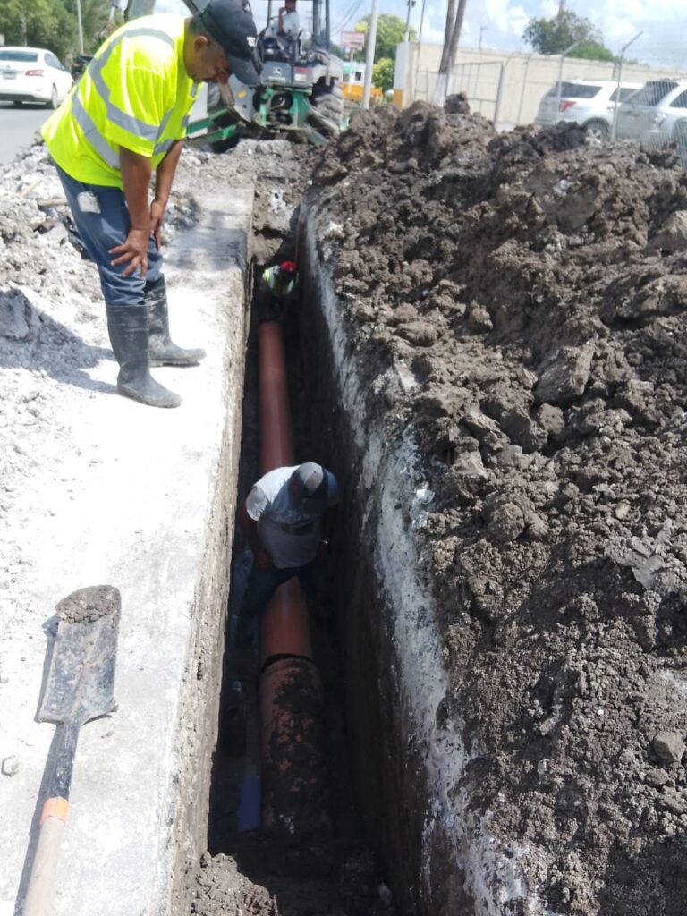 El alcalde Beto Granados supervisó los avances de la obra de rehabilitación de drenaje la línea sanitaria en la carretera Sendero Nacional, donde se instala tubería de 12 pulgadas para mejorar el servicio y prevenir futuros colapsos.