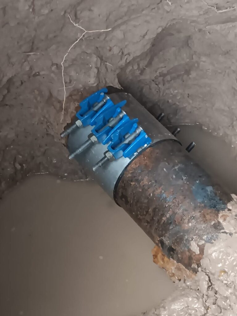 Durante los trabajos se instaló una abrazadera en la línea afectada, logrando reparar por completo la fuga y restablecer el correcto funcionamiento del servicio en la zona.