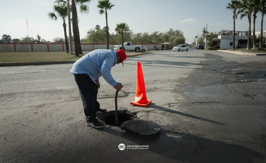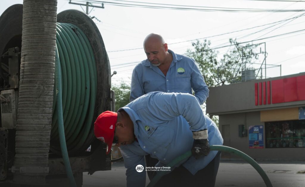 Siguiendo la encomienda del Presidente Municipal de Matamoros, Beto Granados, personal del área de vactor de la Junta de Aguas y Drenaje realizó trabajos de desazolve en las líneas de drenaje sanitario de la Avenida Cantinflas, donde los niveles se encontraban elevados debido a la acumulación de lodo.